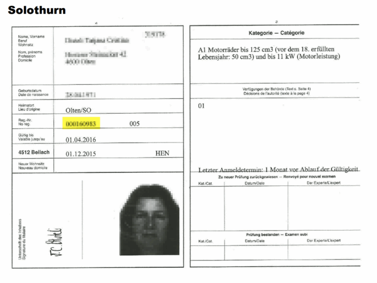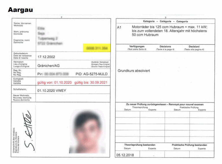 Wo finde ich die Ausweissnummer? AargauDie Ausweisnummer ist der gelb markierte Bereich. Basel-LandschaftDie Ausweisnummer ist der gelb markierte Bereich. Basel-StadtDie Ausweisnummer ist der gelb markierte Bereich. SolothurnDie Ausweisnummer ist der gelb markierte Bereich.